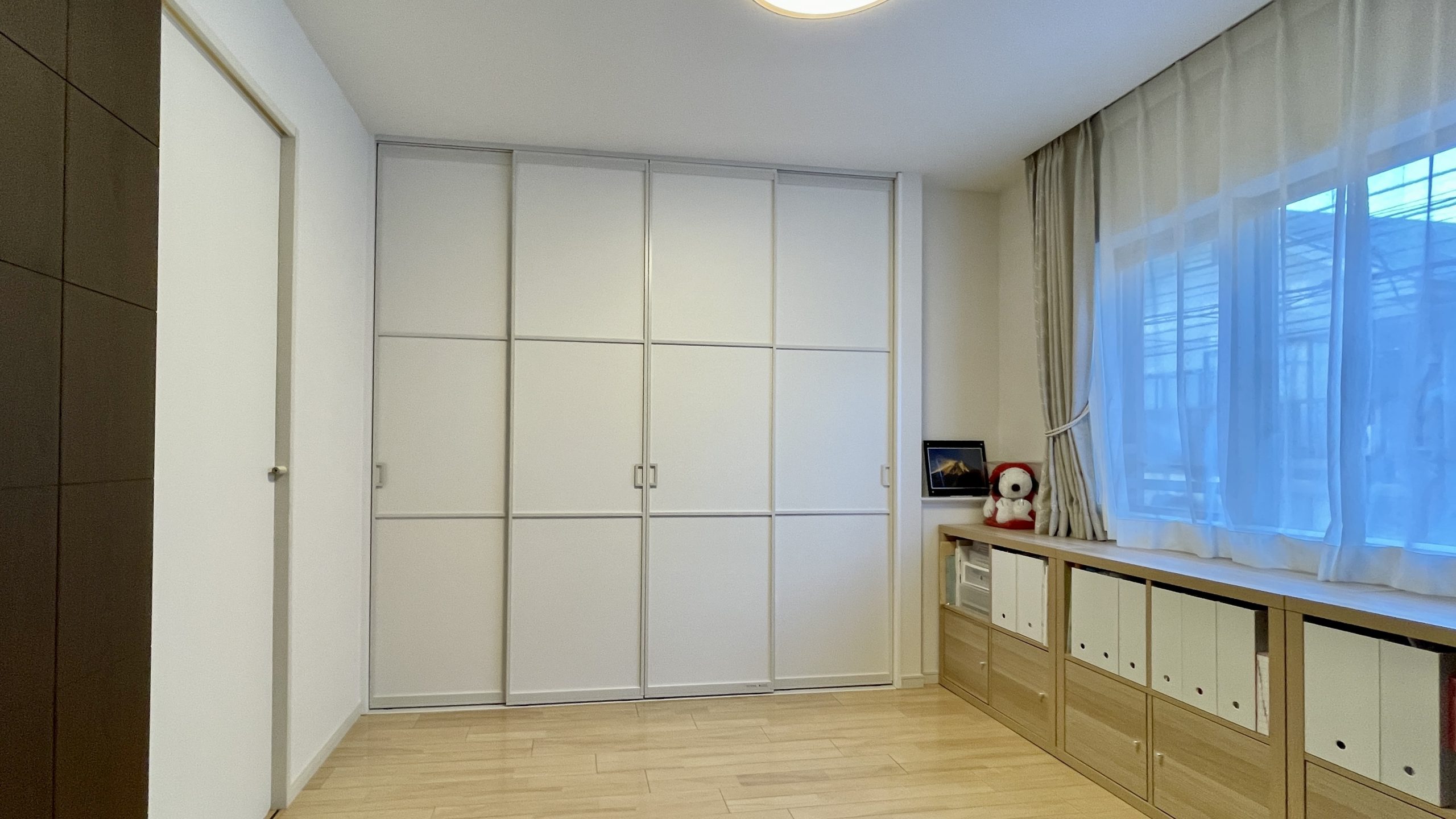 なるべく高い場所に物を置かないように吊り収納はやめて棚のみに