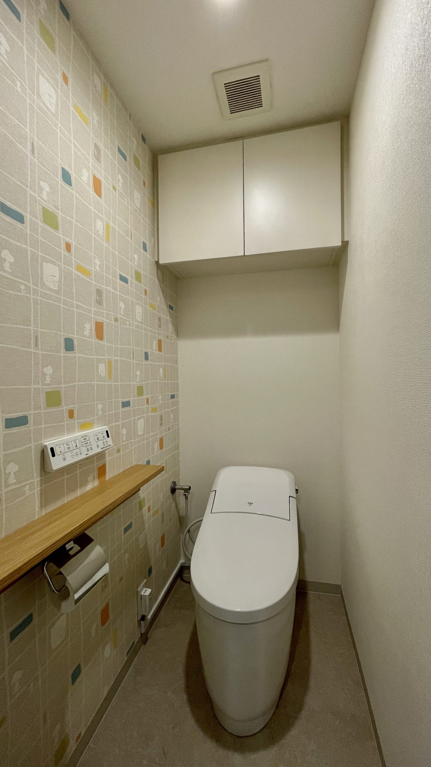 一部壁には新しく飾り棚を設置し小物を飾れる様にした